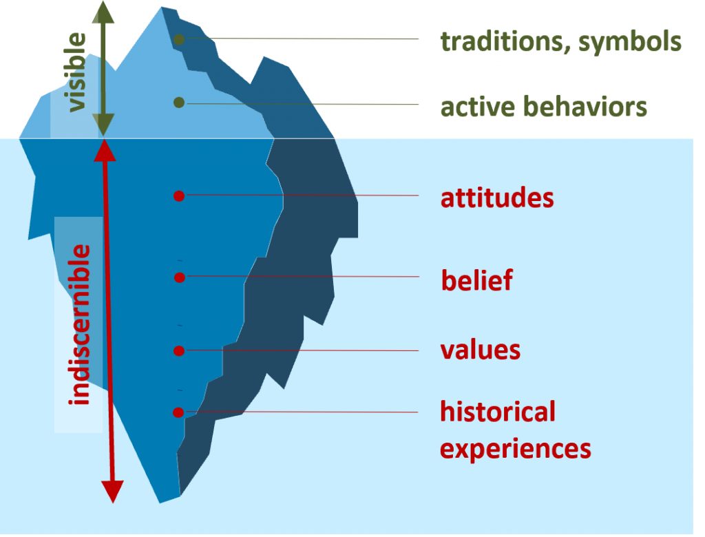 Visible elements such as rules, procedures, symbols, and observed behaviour are only the tip of the iceberg.