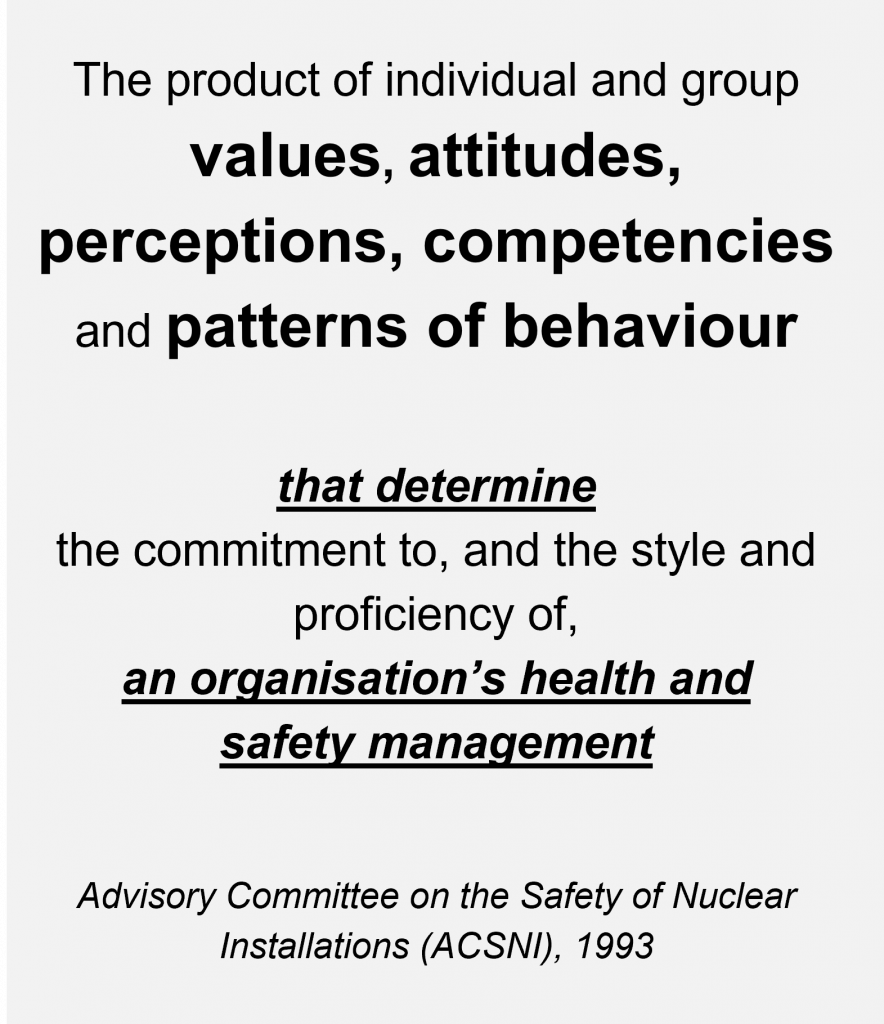 As defined by the Advisory Committee on the Safety of Nuclear Installations (ACSNI, 1993), safety culture reflects: